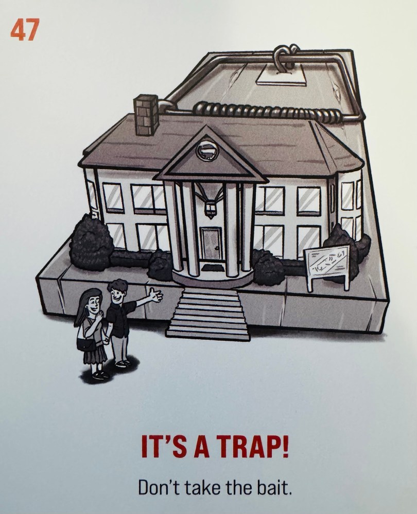 A nice pair excited to enter their beautiful new home, unaware that it’s set on top of a giant mouse trap.